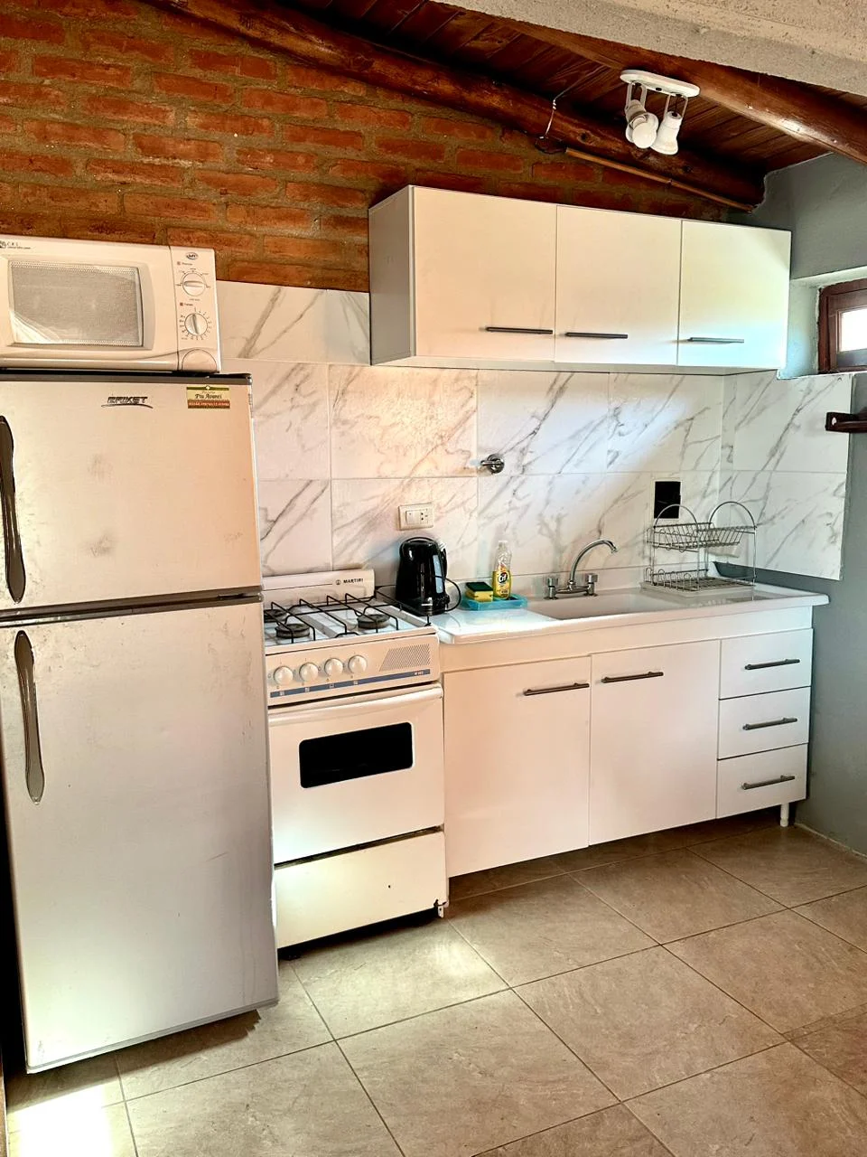 - Heladera, cocina, microondas y termotanque